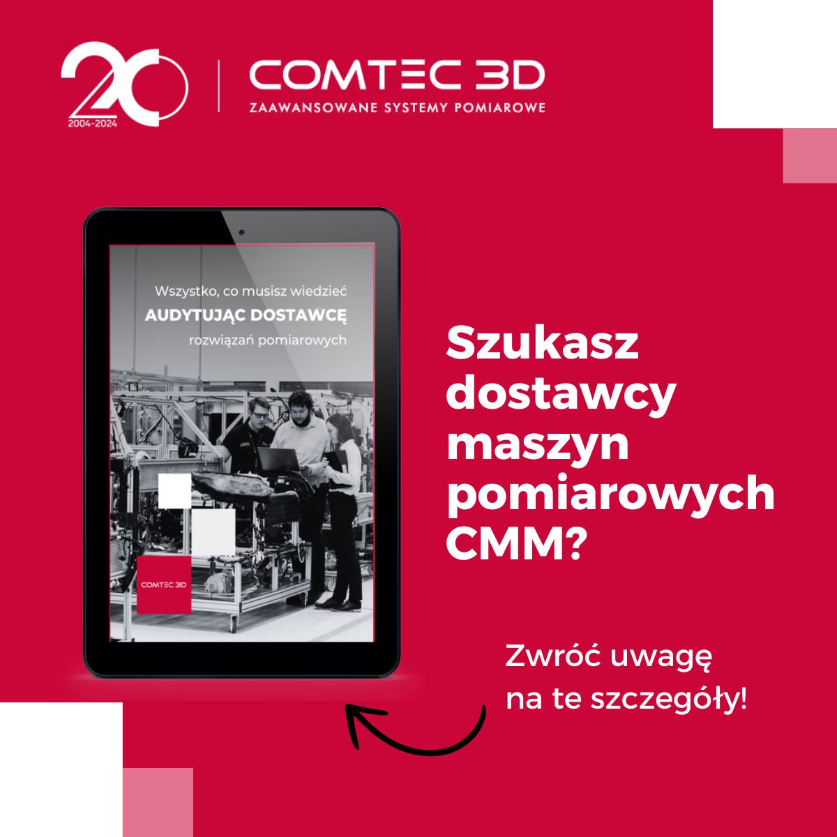 📚 Szukasz najlepszego dostawcy maszyn pomiarowych CMM? Nie zostawiaj tego wyboru przypadkowi – sprawdź, co naprawdę się liczy! 🚀 Pobierz nasz darmowy e-book „Wszystko, co musisz wiedzieć, audytując dostawcę” i dowiedz się: ✅ Jakie kryteria powinien spełniać zaufany dostawca? ✅ Na co zwrócić uwagę podczas wyboru maszyny pomiarowej CMM? ✅ Dlaczego wsparcie po zakupie jest tak ważne? 🔗 Kliknij i pobierz e-book https://lnkd.in/dTM7bhKb Z naszym przewodnikiem łatwiej podejmiesz świadomą decyzję i znajdziesz partnera, który zapewni Ci najlepsze rozwiązania pomiarowe. #COMTEC3D #Ebook #CMM #Metrologia #Precyzja #AudytDostawcy #Wiedza #zNamiTechnologiaMaWymiar